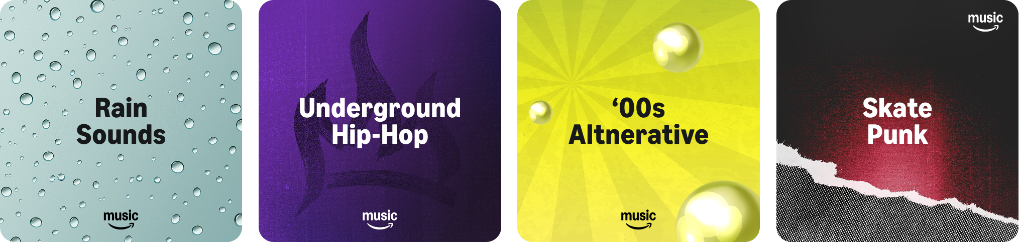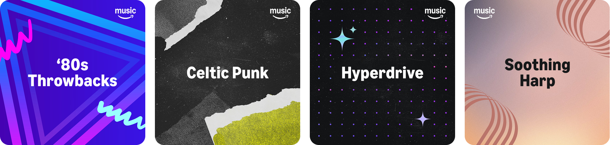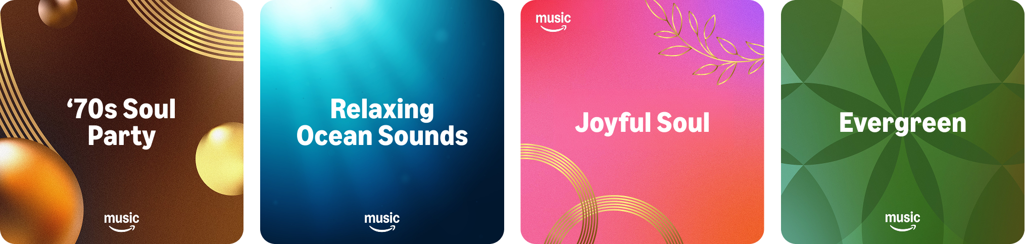 Spanning over 12 genres, evergreen, mood, and activity playlists comprise over 60% of their catalog. Designs were either derived from style guides or bespoke to match the specific mood of the collections.