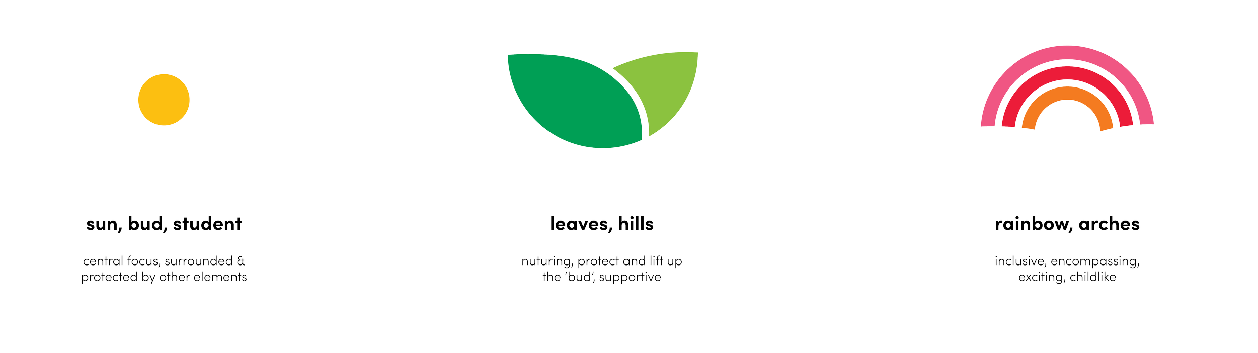 Using simplistic icons of a sun, bud, leaves, hills, and a rainbow, a colorful logo was formed, representing the elements needed to lead young minds to success. Lowercase serifs complemented the nearly symmetrical logo mark, resulting in a minimal and modern logo that abstractly conveys Bloom’s philosophy and the sense of trust and warmth that they offer their families.